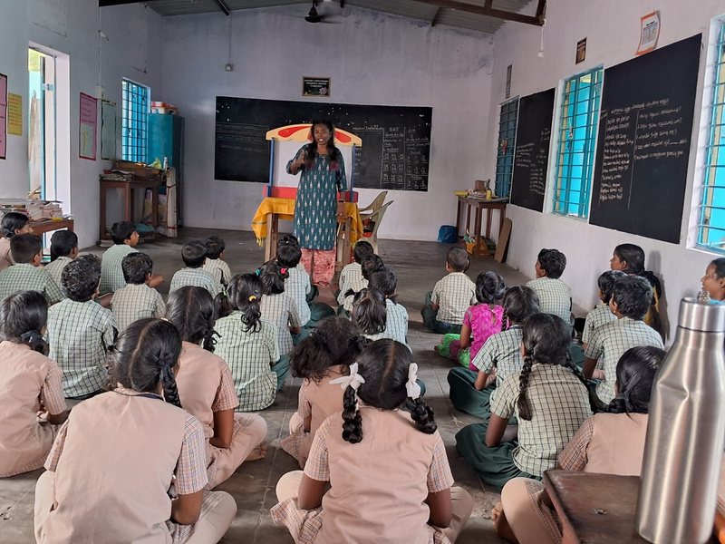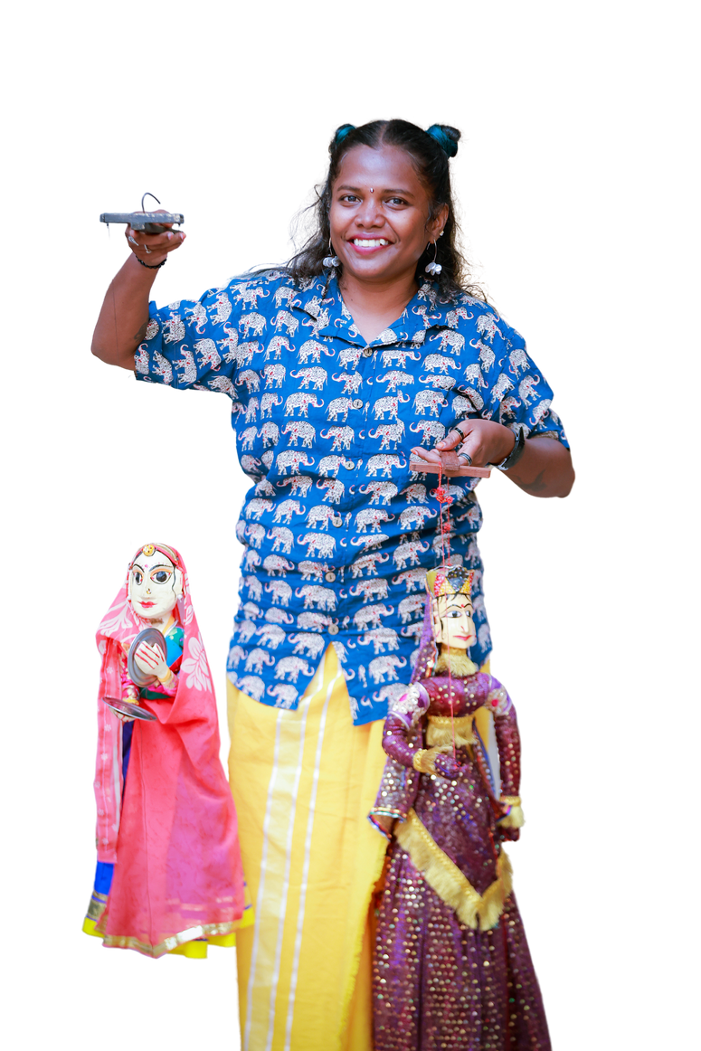 I am a puppeteer, a storyteller, and a theatre artist. I design reading programs that spread the joy of reading using storytelling, puppetry, and elements of theatre in schools across Tamil Nadu.